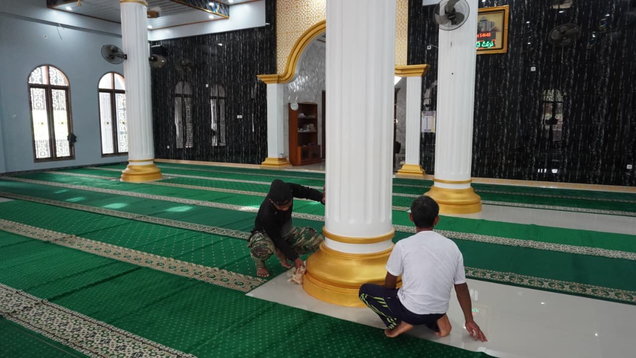 Atas instruksi dari Dansatgas, Pasiter mengerahkan sejumlah anggota tim untuk membersihkan area dalam dan luar masjid. Kegiatan ini mencakup kegiatan menyapu, mengepel lantai, hingga merapikan halaman masjid di sekitarnya.