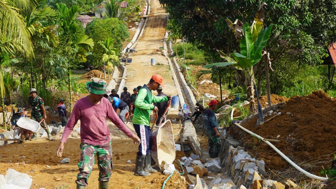 Semangat kolaborasi terlihat jelas di lokasi kerja. Anggota TNI bersama masyarakat saling mendukung dan mengerjakan pembangunan dengan penuh rasa tanggung jawab. Meskipun menghadapi cuaca panas dan medan kerja yang menantang, semangat untuk menyelesaikan tugas mereka tetap tinggi.