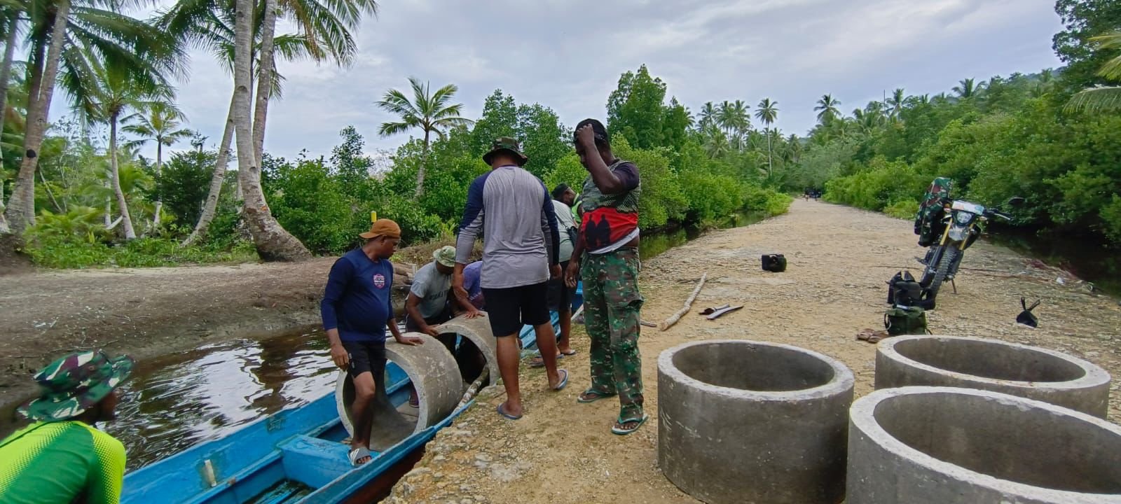 Kaimana – Program TNI Manunggal Membangun Desa (TMMD) ke-127 terus menghadirkan berbagai proyek infrastruktur yang memberikan manfaat bagi masyarakat. Pada tanggal 16 Februari 2026, anggota Satgas bersama warga setempat melakukan pemindahan cincin sumur bor dari Kampung Marsi menuju Kampung Sisir 2.