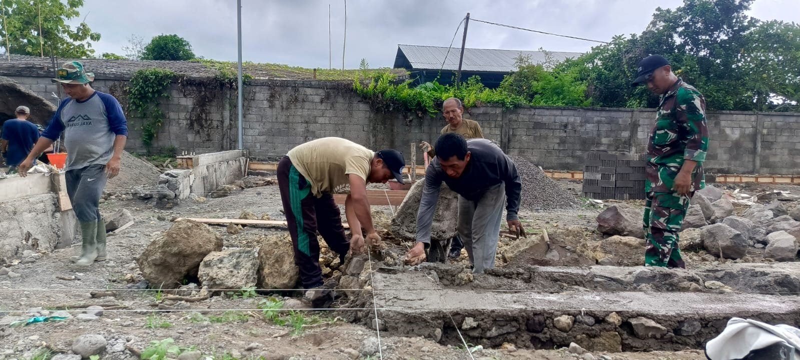 Sejak pagi terlihat personel Kodim Klungkung dipimpin langsung Danramil 1610-01/Klungkung Kapten Cpl Putu Agus dibantu warga mulai beraktivitas dalam pembangunan KDKMP Desa Jumpai.