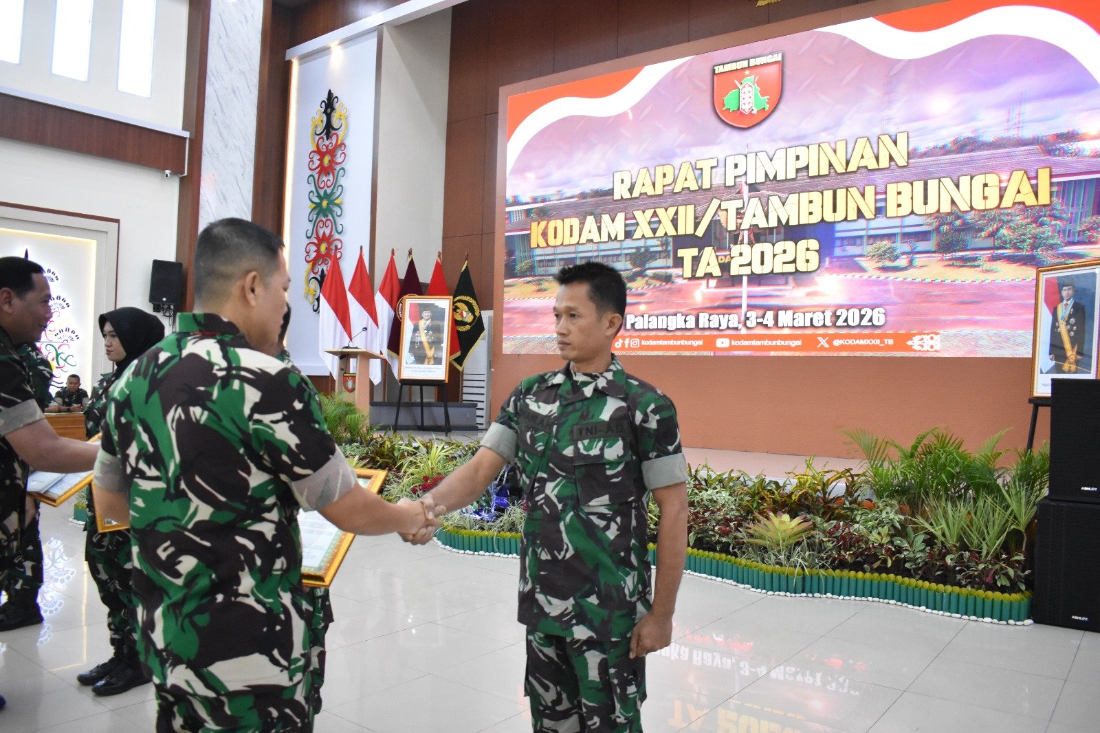 Palangka Raya – Pada kesempatan Rapat Pimpinan (Rapim) Kodam XXII/Tambun Bungai TA 2026, Pangdam XXII/TB, Mayjen TNI Zainul Arifin, memberikan penghargaan kepada para prajurit berprestasi sebagai bentuk apresiasi atas dedikasi dan kinerja, sekaligus untuk memotivasi seluruh jajaran agar terus berinovasi dan memberi dampak nyata bagi masyarakat.