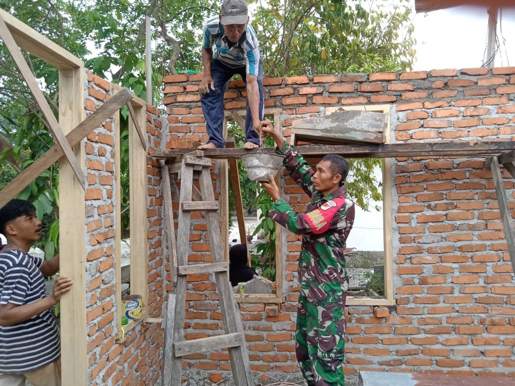 Dalam kegiatan ini, Sertu Afjan turut berpartisipasi langsung dalam pembangunan rumah milik Bapak Ambo, seorang warga setempat yang membutuhkan bantuan.