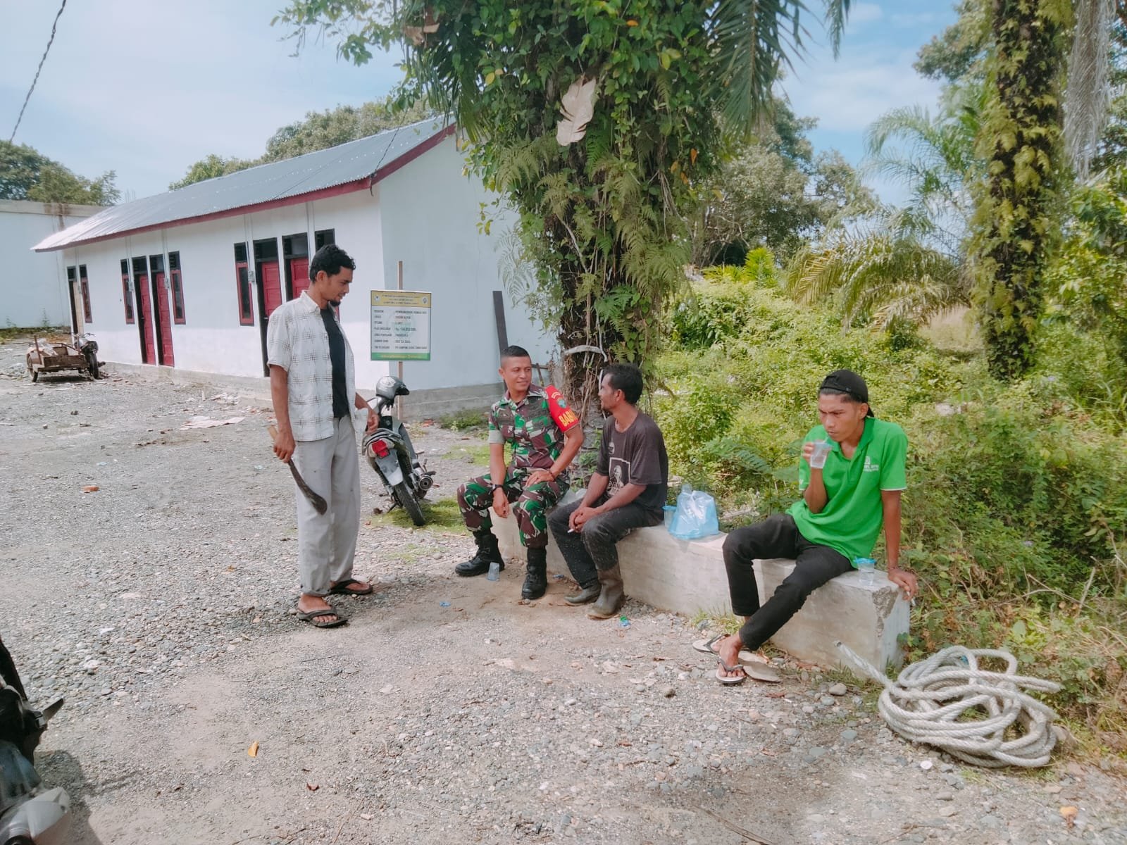 ACEH BARAT – Anggota Koramil 04/Meureubo Kodim 0105/Abar, Sertu Zainal Abidin, merupakan salah satu Babinsa yang aktif dan rendah hati. Layaknya hari ini, dirinya tanpa sungkan-sungkan apalagi menjaga gengsi untuk duduk di tepi jalan guna melaksanakan Komsos dengan warga Desa Ujong Tanoh Darat, Kecamatan Meureubo, Selasa (25/11/2025).