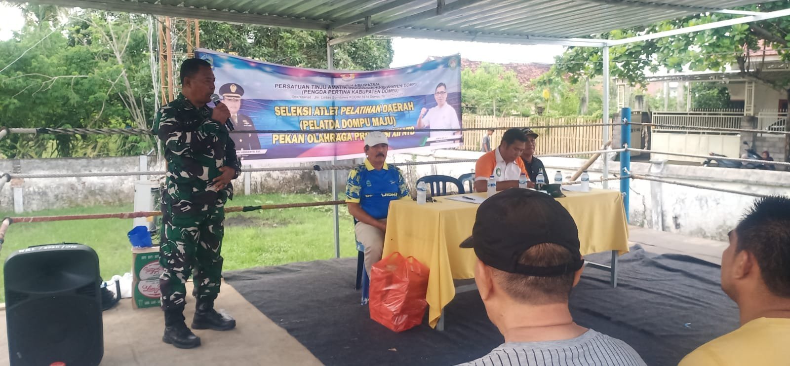 Rapat ini dihadiri oleh sejumlah unsur penting olahraga dan pemerintahan daerah, antara lain perwakilan Ketua KONI Dompu Drs. Rusman, PNS Muhtar selaku wasit, perwakilan Dandim 1614/Dompu Kapten Inf Hamzah, Ketua Harian Pertina Dompu Iwan Ermansyah, M.Pd, Sekretaris Pertina M. Chadir Wardhani, M.M.Pd, para pelatih, serta para atlet muda yang akan mengikuti seleksi.