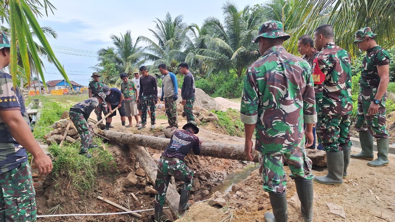 Sinergi Penuh Makna: Satgas TMMD 127 dan Masyarakat Sambuli Perbaiki Jembatan Lama