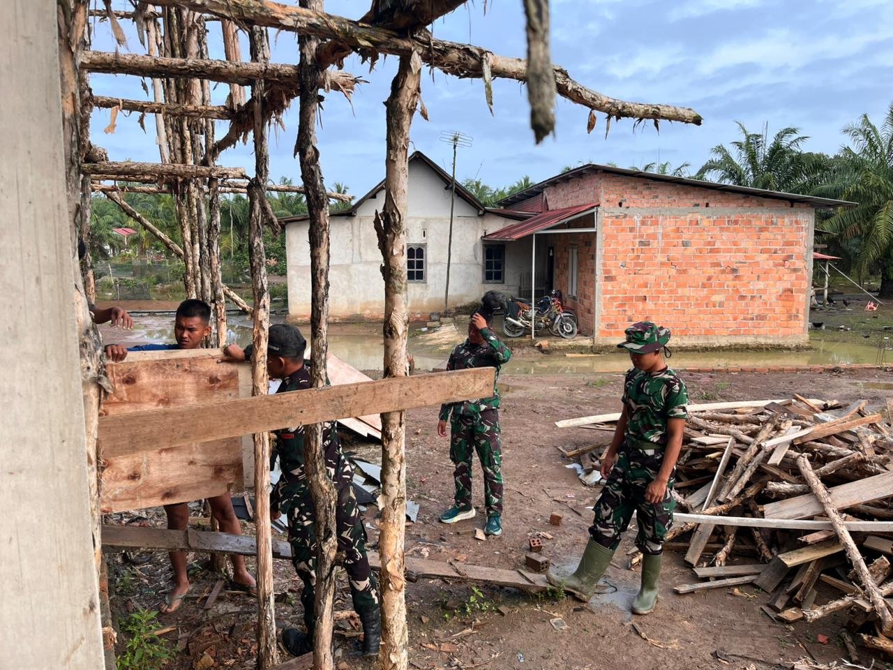 Banyuasin – Selain berfokus pada program pembangunan desa, anggota Satgas TMMD Ke-127 juga aktif dalam kegiatan sosial keagamaan dengan terlibat dalam gotong royong pembangunan Masjid Jami Darussalam yang terletak di Desa Wonosari, Kecamatan Pulau Rimau. Kegiatan ini dilakukan bersama masyarakat sebagai wujud kebersamaan antara prajurit TNI dan warga setempat.