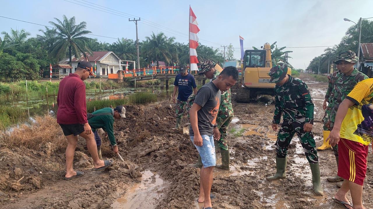 Banyuasin, pada hari ketujuh pelaksanaan TMMD ke-127, anggota Satgas TMMD 127 Kodim 0430/BA bekerja sama dengan masyarakat setempat untuk mempercepat kegiatan fisik. Kegiatan tersebut berupa gotong royong pembersihan dan pembukaan badan jalan yang menghubungkan Desa Wonosari dan Desa Rukun Makmur, yang berlangsung pada 17 Februari 2026.