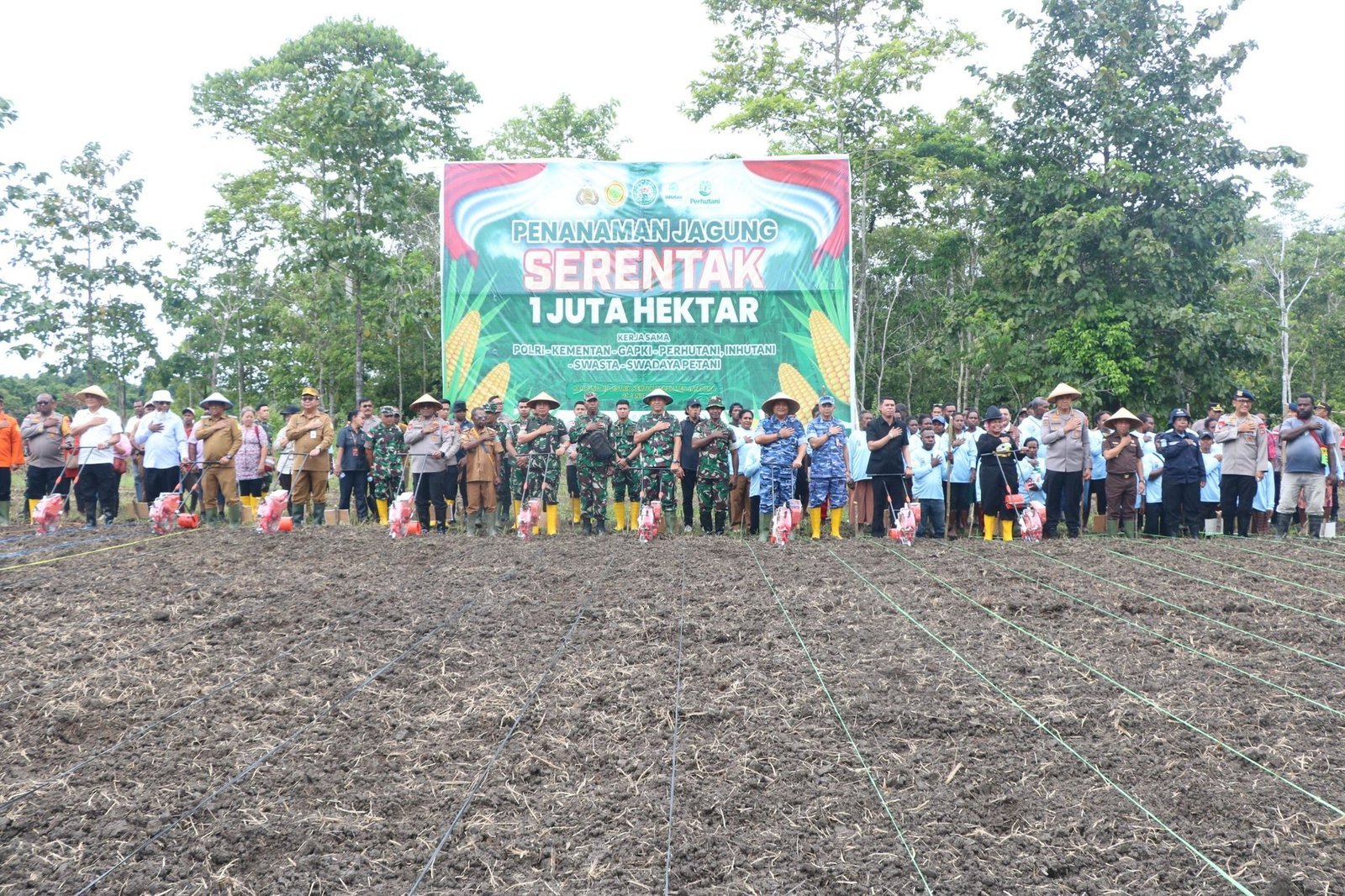 Komandan Lanud Silas Papare Marsma TNI Mokh Mukhson, S.E., M.M., menghadiri penanaman jagung serentak bersama Forum Komunikasi Pimpinan Daerah (Forkopimda) Kabupaten Jayapura di Kampung Aib, Distrik Kemtuk, Selasa (21/1/2025). Program ini merupakan sinergi antara Kepolisian Daerah Papua dan Pemerintah Kabupaten Jayapura guna mendukung swasembada pangan nasional yang sejalan dengan visi Astacita Presiden Prabowo Subianto.