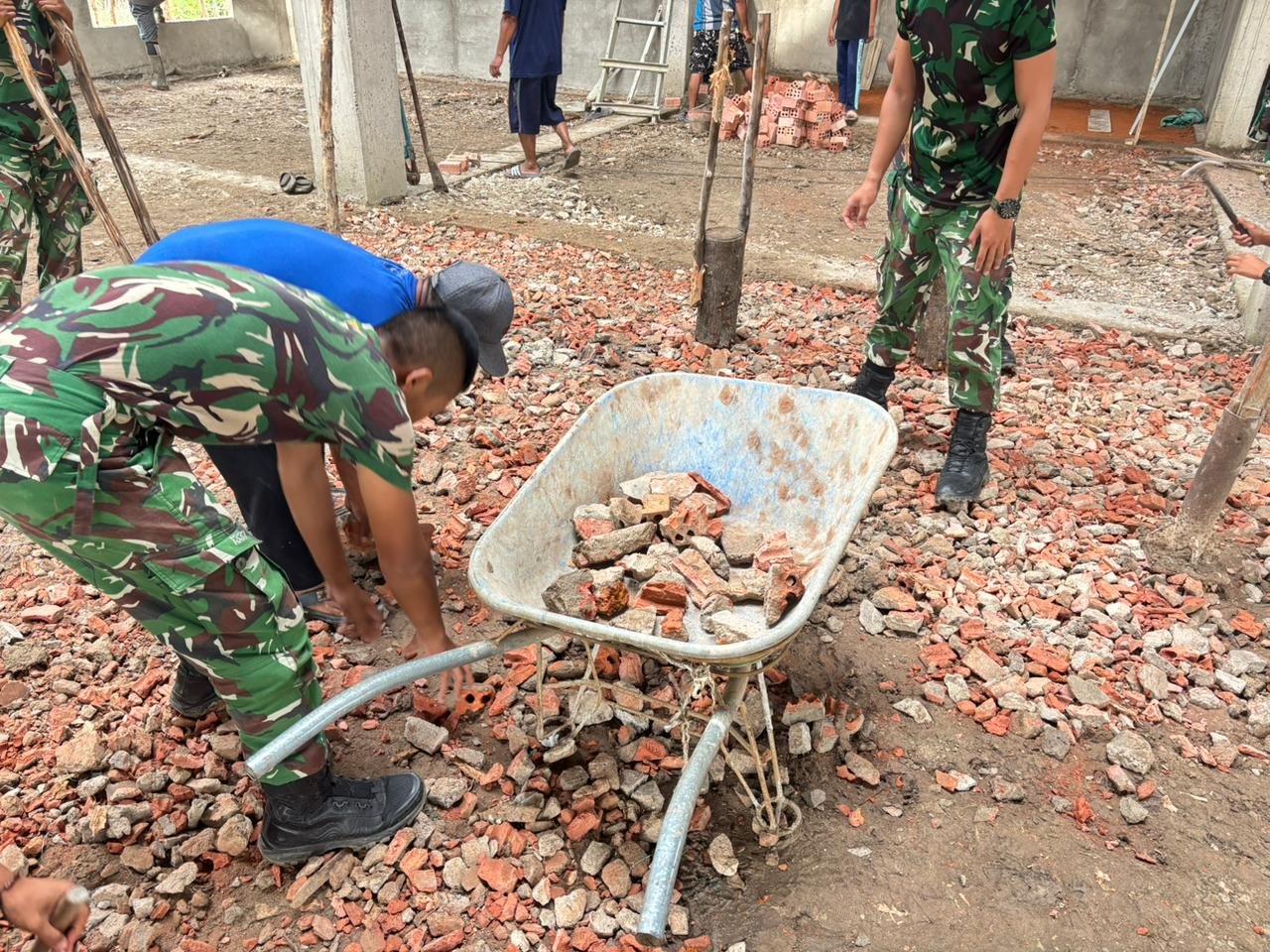 Banyuasin – Dalam rangkaian kegiatan TMMD ke-127 Kodim 0430/BA, anggota Satgas TMMD tetap meluangkan waktu untuk berkontribusi dalam pembangunan Masjid Jami di Desa Wonosari, Kecamatan Pulau Rimau, pada tanggal 24 Februari 2026. Kegiatan gotong royong ini menjadi indikator nyata dari kemanunggalan antara TNI dan masyarakat. Personel Satgas bekerja bersama masyarakat setempat, memperlihatkan solidaritas dan semangat kebersamaan untuk mempercepat proses pembangunan rumah ibadah tersebut.