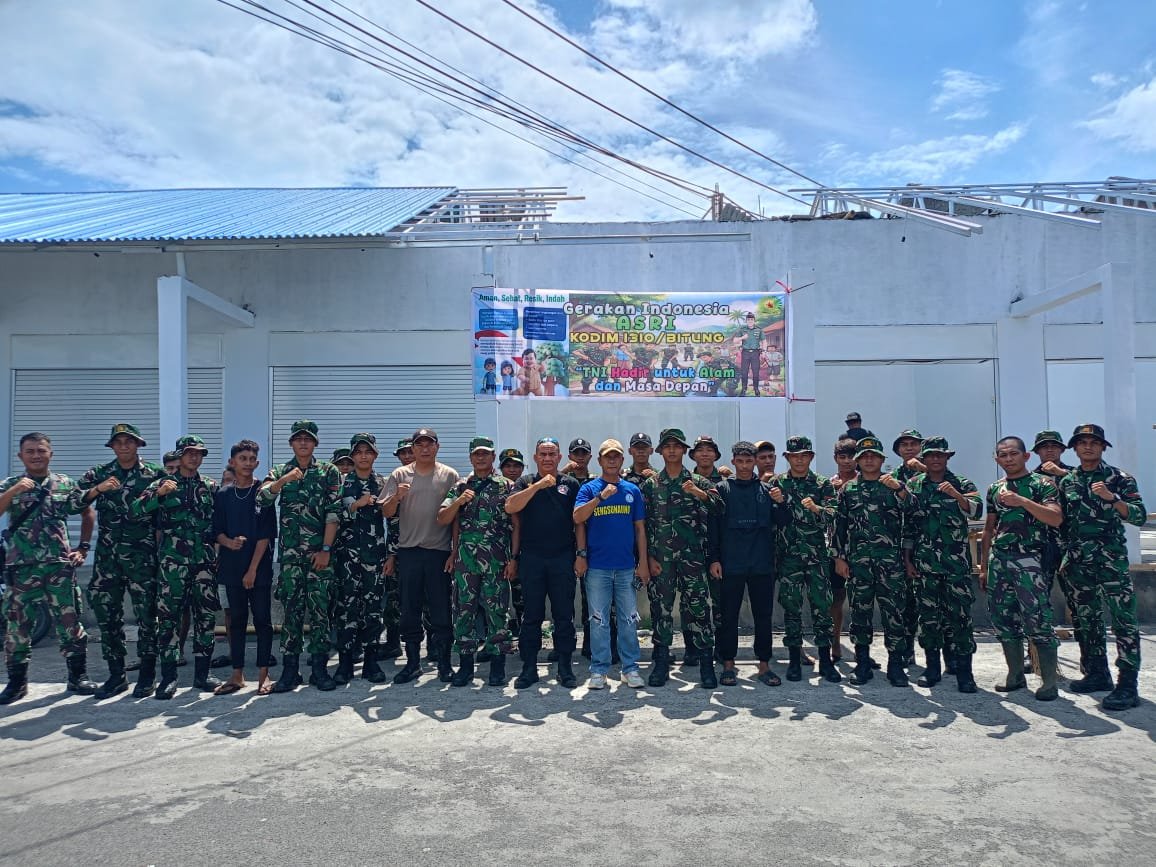 BITUNG – Dalam upaya mendukung Gerakan Indonesia Asri, personel TNI dari Kodim 1310/Bitung dan Yonif TP 916/Bara Sakti Kodam XIII/Merdeka bersama warga melaksanakan kegiatan Karya Bakti pembersihan lingkungan di Kompleks Kanopi, Kelurahan Bitung Timur, Kecamatan Maesa, Kota Bitung, pada Rabu (18/03/2026).