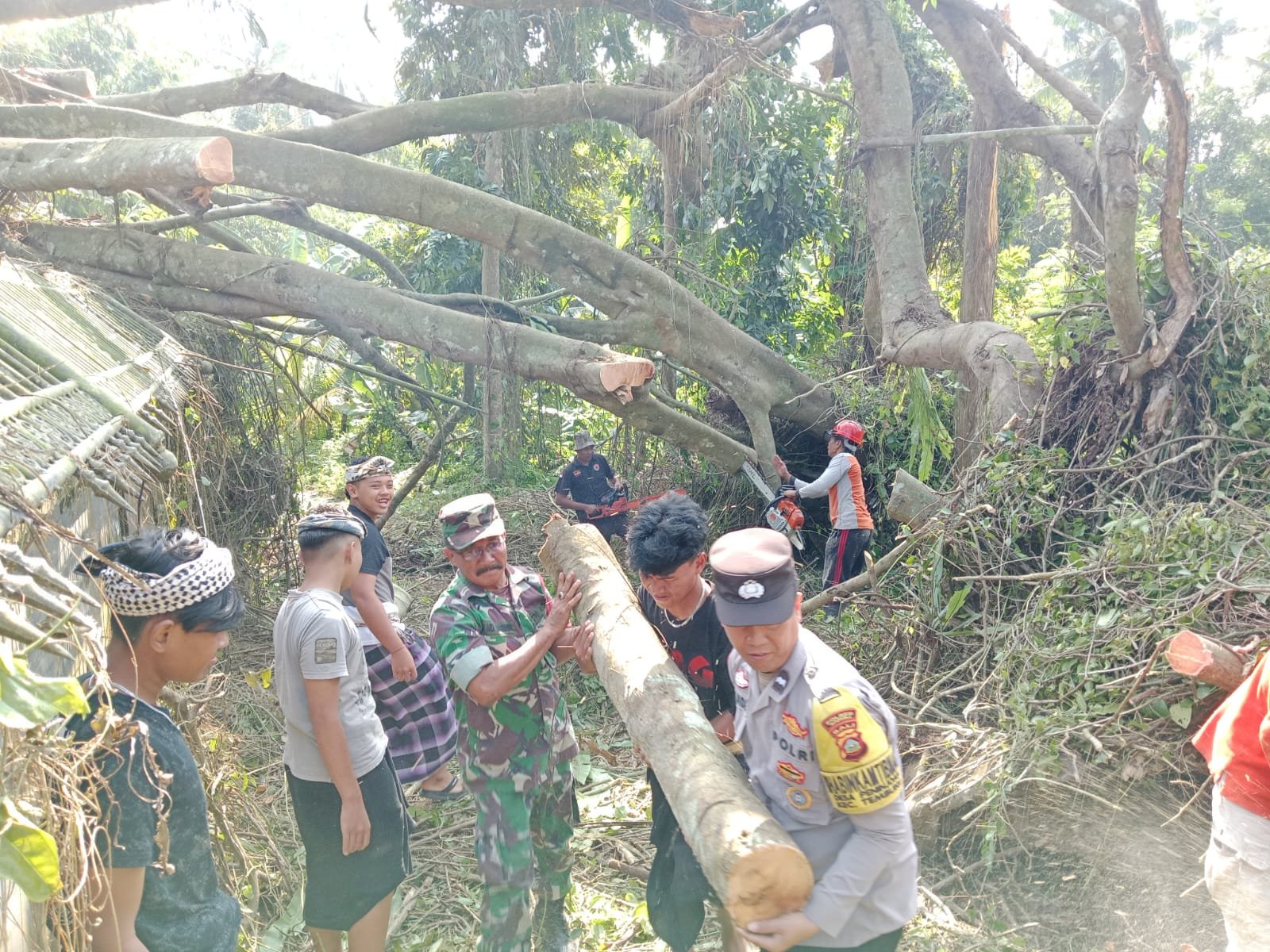 Menanggapi situasi darurat ini, Babinsa dan Bhabinkamtibmas segera berkoordinasi dengan warga untuk mengatasi masalah tersebut. Mereka memanfaatkan peralatan seadanya untuk memotong dan mengevakuasi batang serta dahan pohon, sambil tetap mengutamakan keselamatan. Berkat kolaborasi dan semangat gotong royong, akses jalan kini sudah dapat dilalui kembali oleh kendaraan roda dua dan empat.