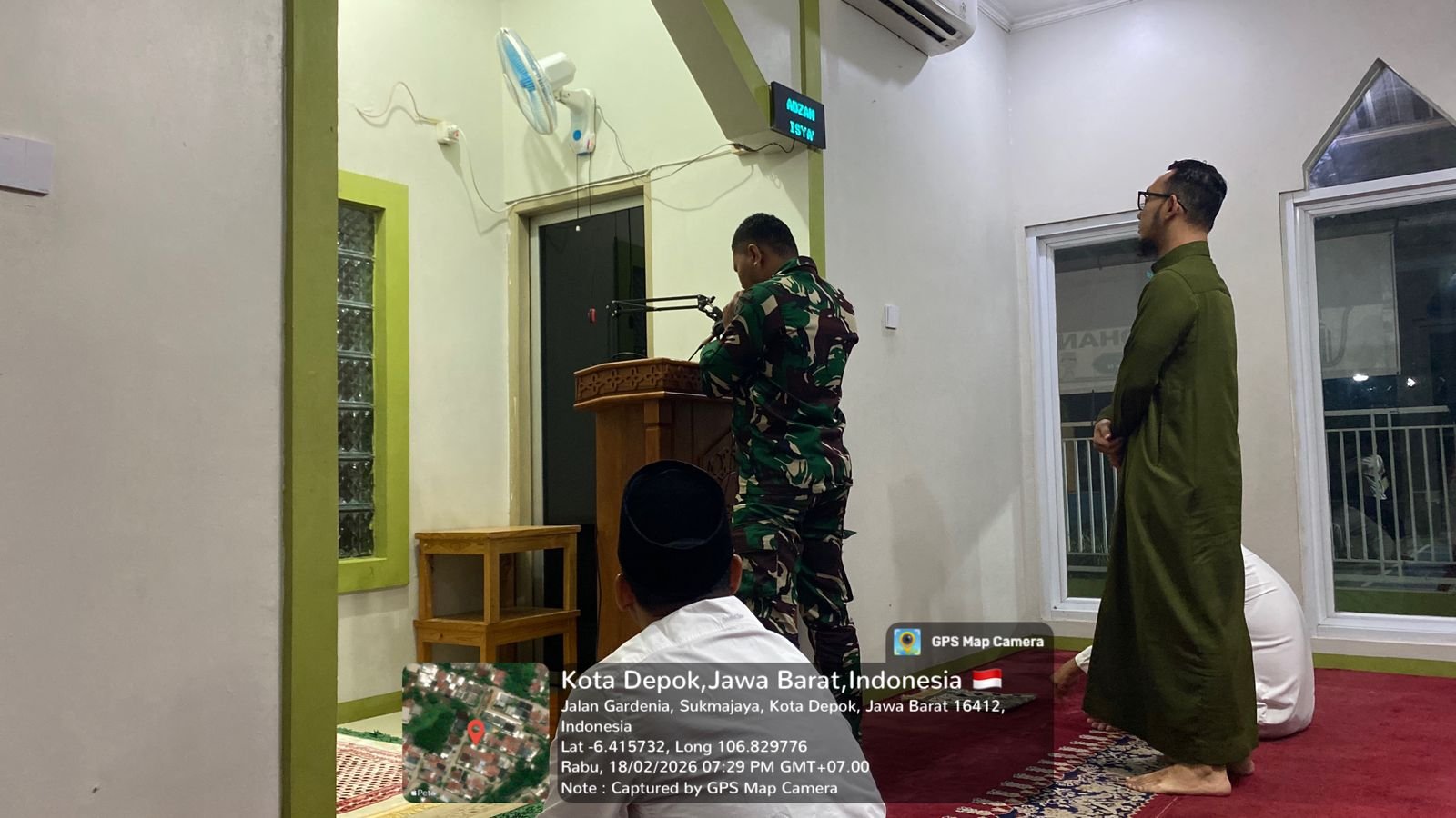 Depok – Hubungan harmonis antara Satgas TMMD Ke-127 Tahun Anggaran 2026 dan masyarakat lokal terjalin tidak hanya melalui proyek fisik, tetapi juga dalam aktivitas ibadah. Pada malam Kamis, 19 Februari 2026, anggota Kodim 0508/Depok melaksanakan sholat Tarawih secara bersama di Mushalla Ar Rahman, yang terletak di Jalan GDC Sektor Gardenia, Kelurahan Tirtajaya, Kecamatan Sukmajaya.