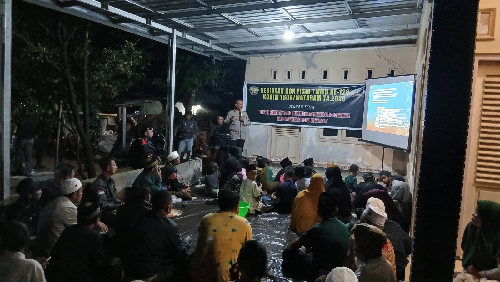 Lombok Barat – Sinergi antara TNI dan Polri kembali tampak dalam kegiatan TMMD ke-126 Kodim 1606/Mataram. Melalui program nonfisik berupa sosialisasi Keamanan dan Ketertiban Masyarakat (Kamtibmas), para aparat mengedukasi warga Dusun Gubuk Baru, Desa Giri Madia, Kecamatan Lingsar, Sabtu malam (11/10/2025).