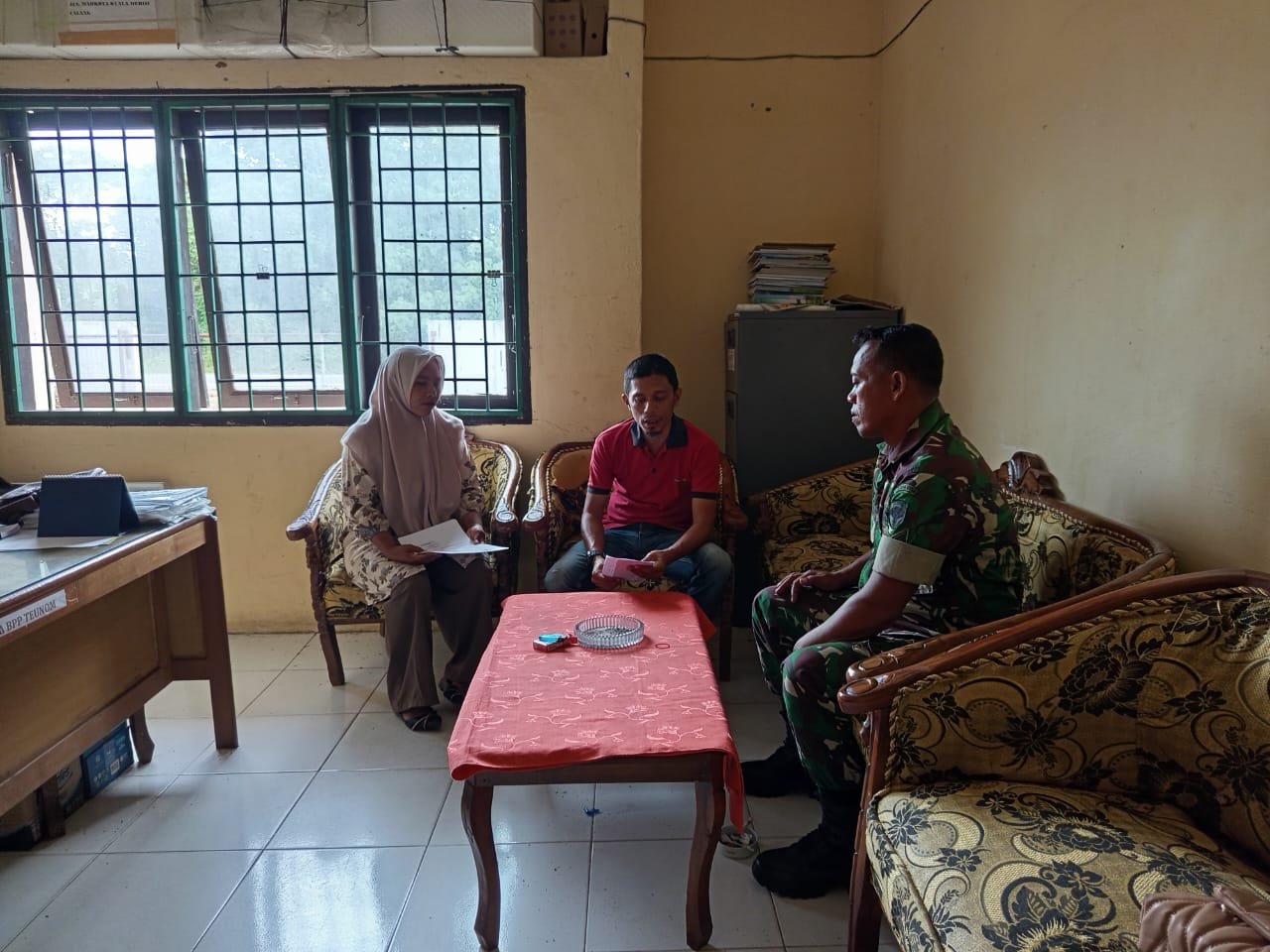 Aceh Jaya – Guna meningkatkan sinergitas antar sesama pendamping pertanian, Bati Tuud Koramil 0114-06/Teunom Sertu Arif Jalin Komunikasi Sosial (Komsos) dengan Badan Penyuluh Pertanian (BPP) Kecamatan Teunom, Kabupaten Aceh Jaya, Kamis (19/12/2024).