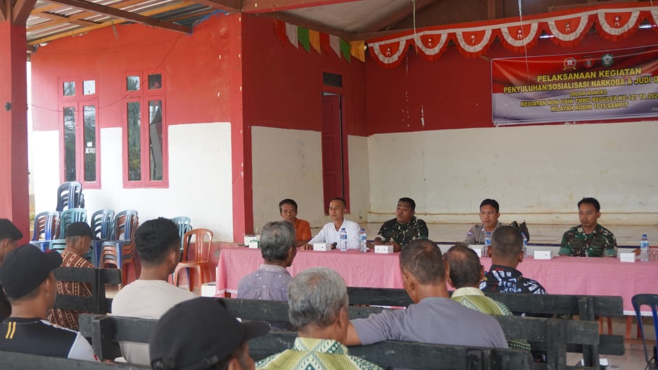 Sampit – Dalam upaya meningkatkan kesadaran masyarakat mengenai dampak negatif dari penyalahgunaan narkoba dan judi online, kegiatan non fisik dalam program TMMD Reguler ke-127 dilaksanakan di aula Kantor Desa Tri Buana, Kecamatan Telaga Antang, Kotawaringin Timur, pada hari Senin (16/02/2026).