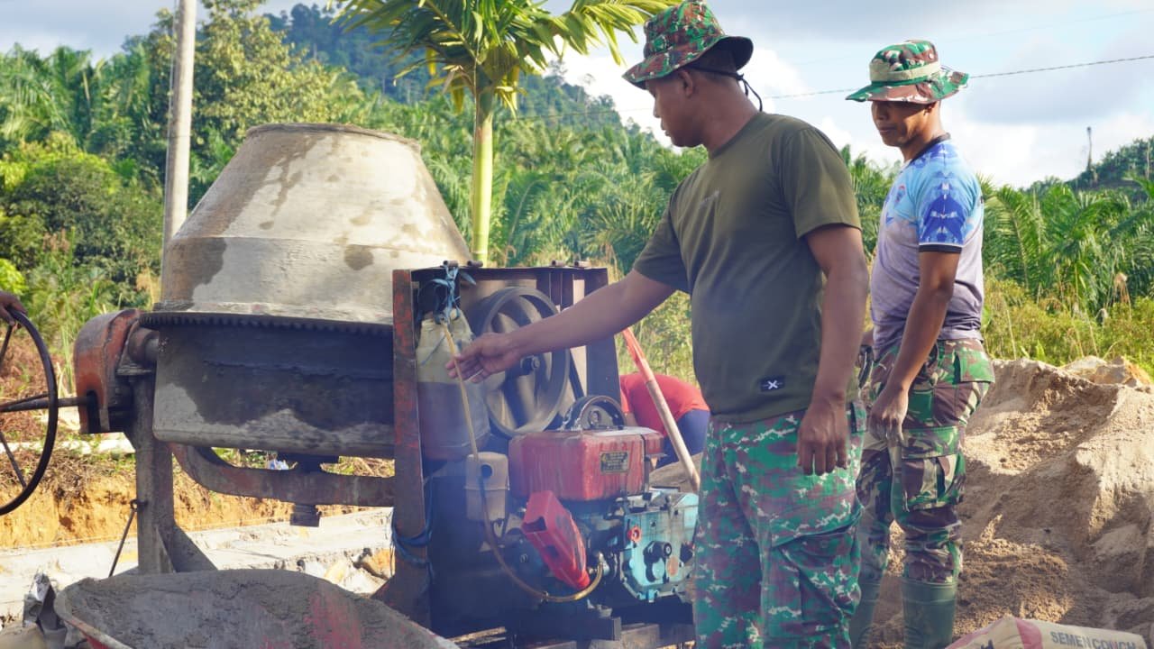 Kotawaringin Timur – Pada hari Jumat (20/02/2026), suara bising dari mesin molen pengaduk pasir, batu, dan semen terus menciptakan suasana di lokasi TMMD Reguler ke-127 Kodim 1015/Sampit yang terletak di Desa Tri Buana, Kecamatan Telaga Antang. Meskipun mengganggu, suara tersebut justru menjadi sumber semangat bagi anggota Satgas dan masyarakat setempat dalam mengejar target pembangunan siring badan jalan.