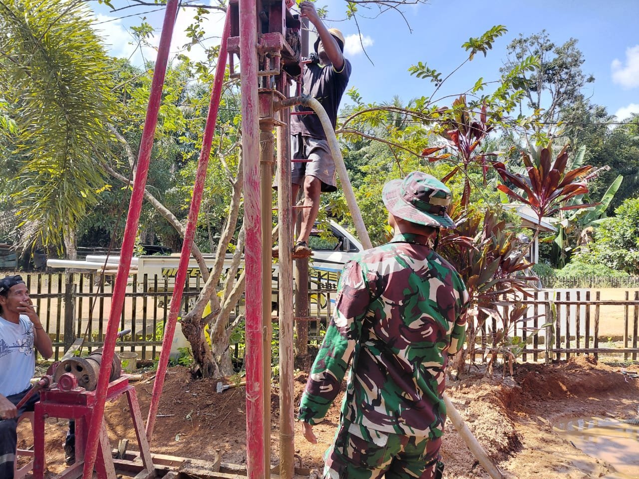 Lamandau – Pembangunan sumur bor ke-5 di SDN Guci, RT 02, Kec. Bulik Kab. Lamandau menjadi salah satu sasaran fisik yang tengah dikebut dalam program TNI Manunggal Membangun Desa (TMMD) Reguler ke-125 Kodim 1017/Lamandau. Hingga Minggu (10/08/2025), progres pengerjaan sudah mencapai 75 persen.