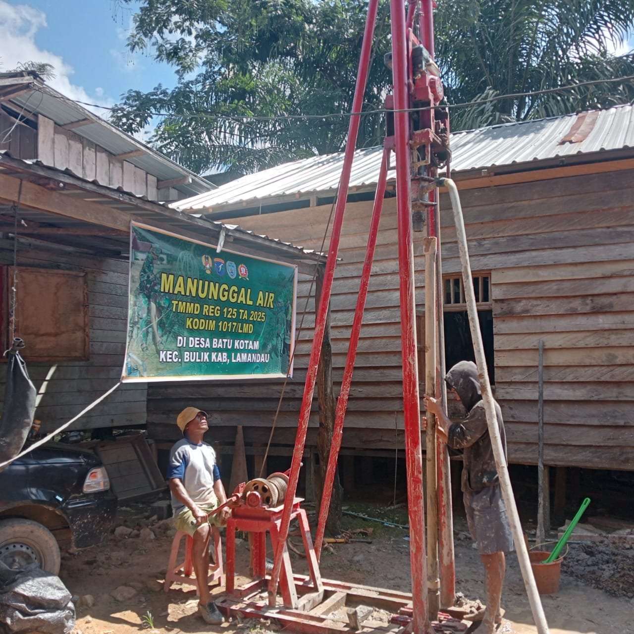 Lamandau – Program TNI Manunggal Membangun Desa (TMMD) Reguler ke-125 Kodim 1017/Lamandau terus menunjukkan progres signifikan. Salah satu sasaran fisik yang menjadi prioritas, yakni pembangunan sumur bor di Kantor Desa Batu Kotam, kini telah mencapai 75% penyelesaian, Minggu (27/07/25).