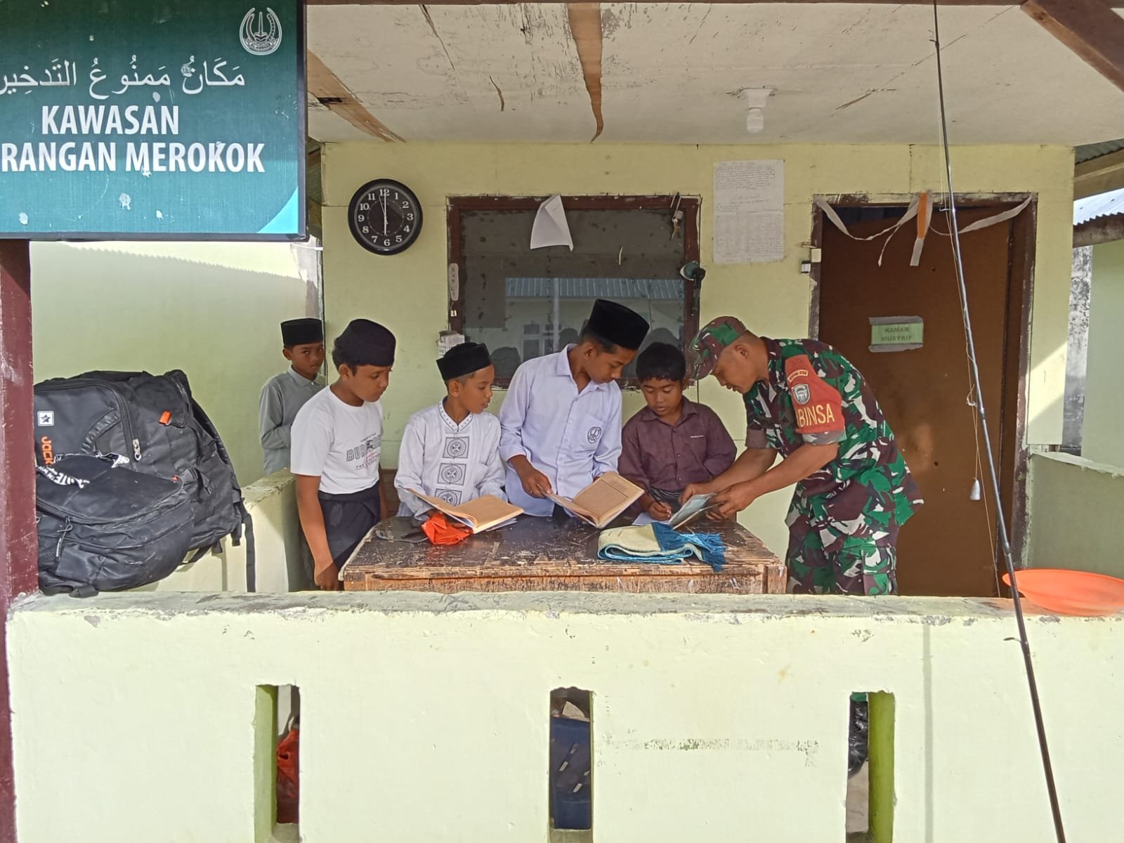 Aceh Jaya – Tanamkan Nilai-nilai kebangsaan sejak dini kepada generasi penerus Bangsa, Babinsa Koramil 0114-03/Setia Bakti Sertu Marwansyah memberikan materi wawasan Kebangsaan kepada para siswa – siswi Pondok Pesantren Al Anshar di Desa Lhok Geulumpang Kec. Setia Bakti Kab. Aceh Jaya, Kamis (19/12/2024).