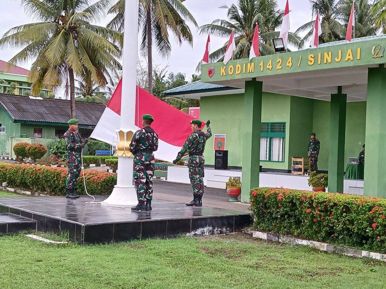 Upacara yang diikuti oleh anggota Kodim 1424/Sinjai ini berjalan khidmat dengan susunan pasukan yang terdiri dari 1 Pok Perwira dan Bintara Tinggi, 2 Sst Pasukan Bersenjata, serta pasukan pengibar bendera. Tiga prajurit yang dipercaya untuk mengibarkan bendera merah putih adalah Sertu Makmur, Sertu Ishak, dan Serda Hamid, yang melaksanakan tugasnya dengan penuh dedikasi dan semangat.