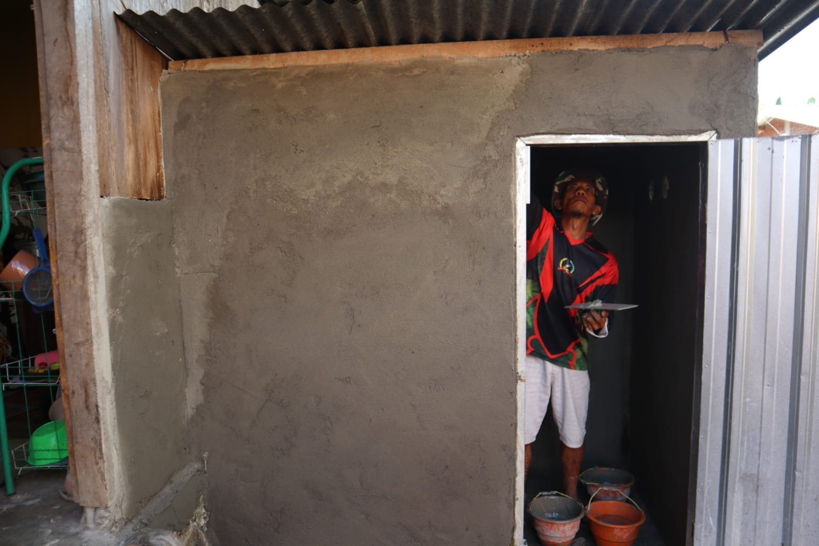 Pantauan di lokasi menunjukkan anggota Satgas TMMD sedang menyelesaikan tahap pengacian dinding sebagai bagian dari pekerjaan akhir. Jika cuaca mendukung, tahap pemasangan keramik lantai akan langsung dilanjutkan agar pembangunan rampung pada hari ini sesuai target.