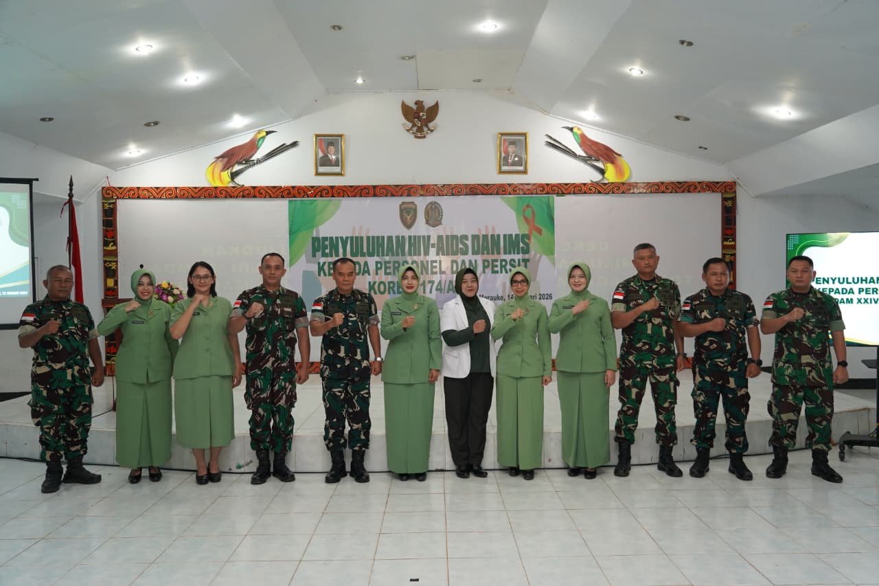 Merauke – Korem 174/Anim Ti Waninggap (ATW) menyelenggarakan penyuluhan Human Immunodeficiency Virus (HIV) dan Infeksi Menular Seksual (IMS) bertempat di Aula Kodim 1707/Merauke, Provinsi Papua Selatan(14/1/2026), diikuti sekitar 100 peserta yang terdiri dari prajurit TNI AD dan Persit Kartika Chandra Kirana jajaran Korem 174/ATW serta personel Kodim jajaran.