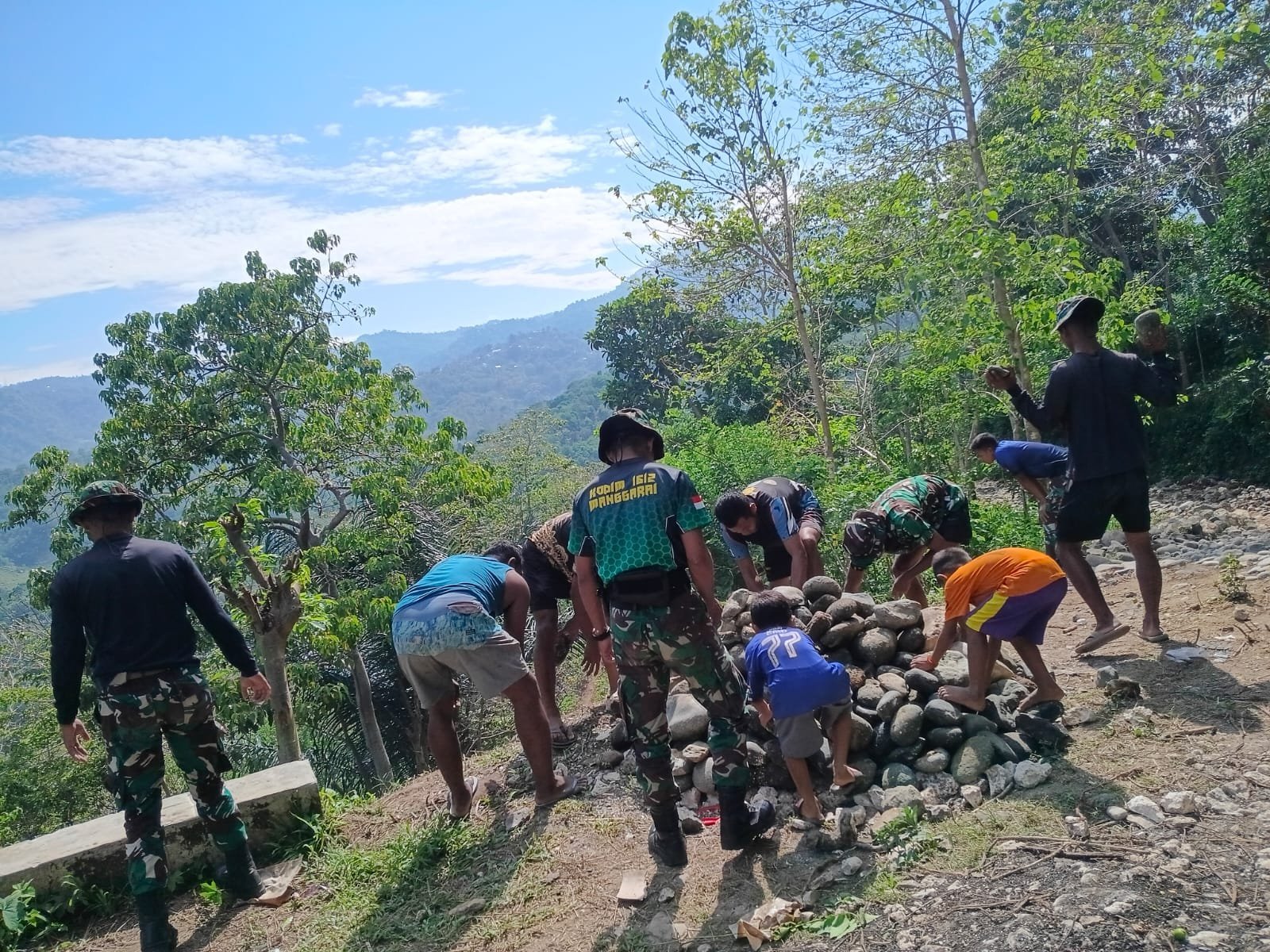 Suasana gotong royong terlihat jelas di lokasi. Prajurit dan warga bekerja berdampingan, memecah dan menata batu di bawah terik matahari demi tercapainya akses yang lebih baik bagi masyarakat. Jalan tersebut nantinya akan mempermudah transportasi, terutama dalam membawa hasil pertanian ke pasar.