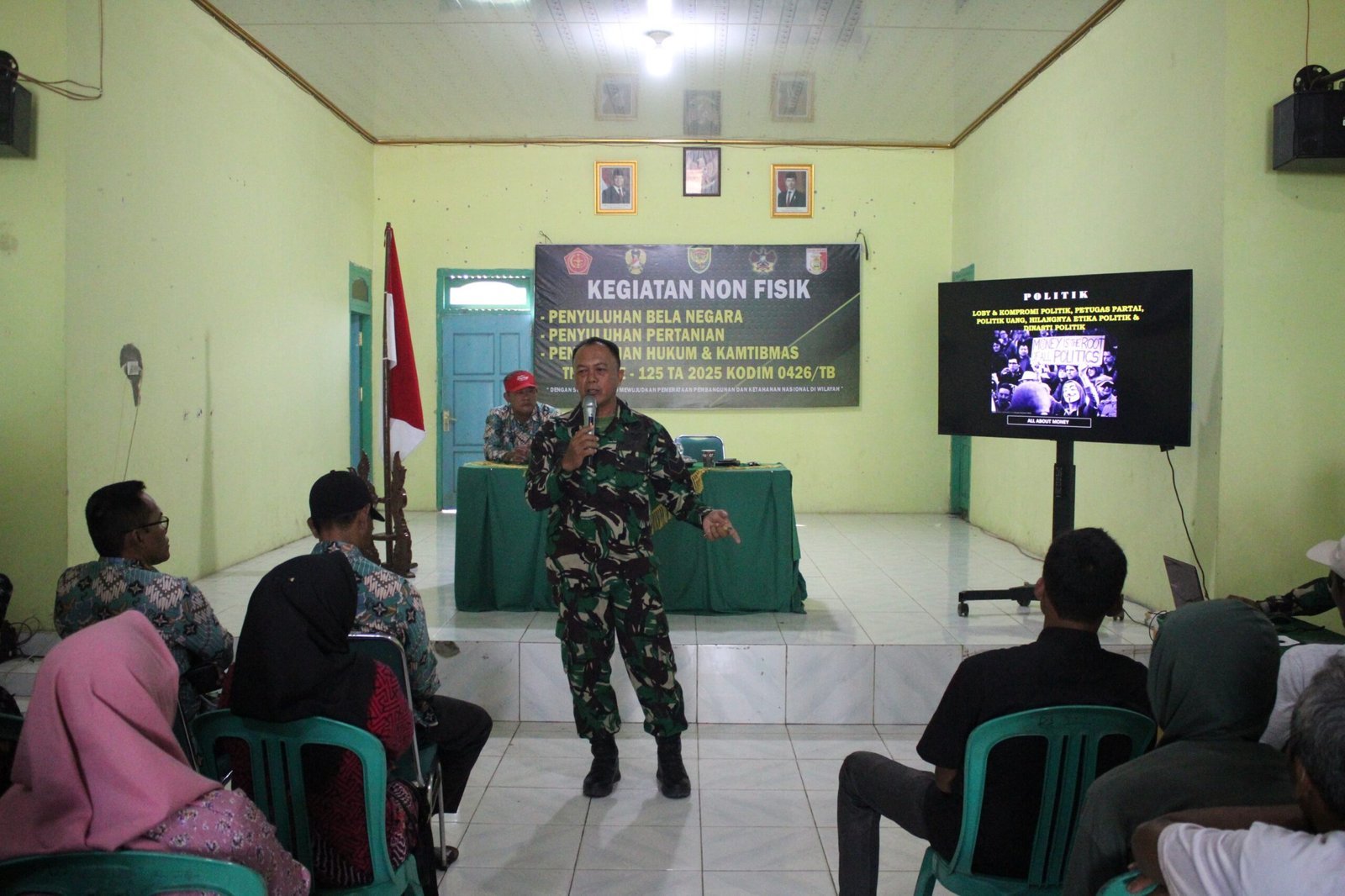 Pada Kamis, 7 Agustus 2025, Kodim 0426/Tulang Bawang menggelar kegiatan non-fisik berupa penyuluhan wawasan kebangsaan. Kegiatan ini bertujuan untuk menanamkan semangat cinta tanah air, memperkuat persatuan dan kesatuan, serta meningkatkan pemahaman masyarakat terhadap nilai-nilai Pancasila dan UUD 1945.