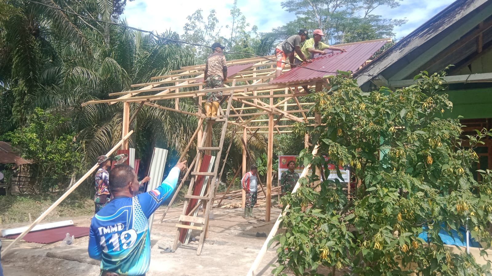 TMMD Ke-125 Kodim 0428/Mukomuko, Semangat Satgas dan Warga Tak Surut Saat Pasang Seng dan Lisplang RTLH