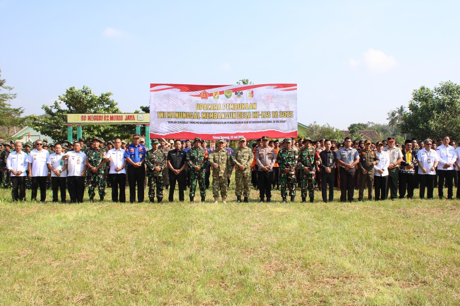 Tulang Bawang, 23 Juli 2025 – Bertempat di Lapangan Kampung Moris Jaya, Kecamatan Banjar Agung, telah berlangsung secara khidmat acara pembukaan TNI Manunggal Membangun Desa (TMMD) ke-125 Tahun Anggaran 2025 oleh Kodim 0426/Tulang Bawang (TB).