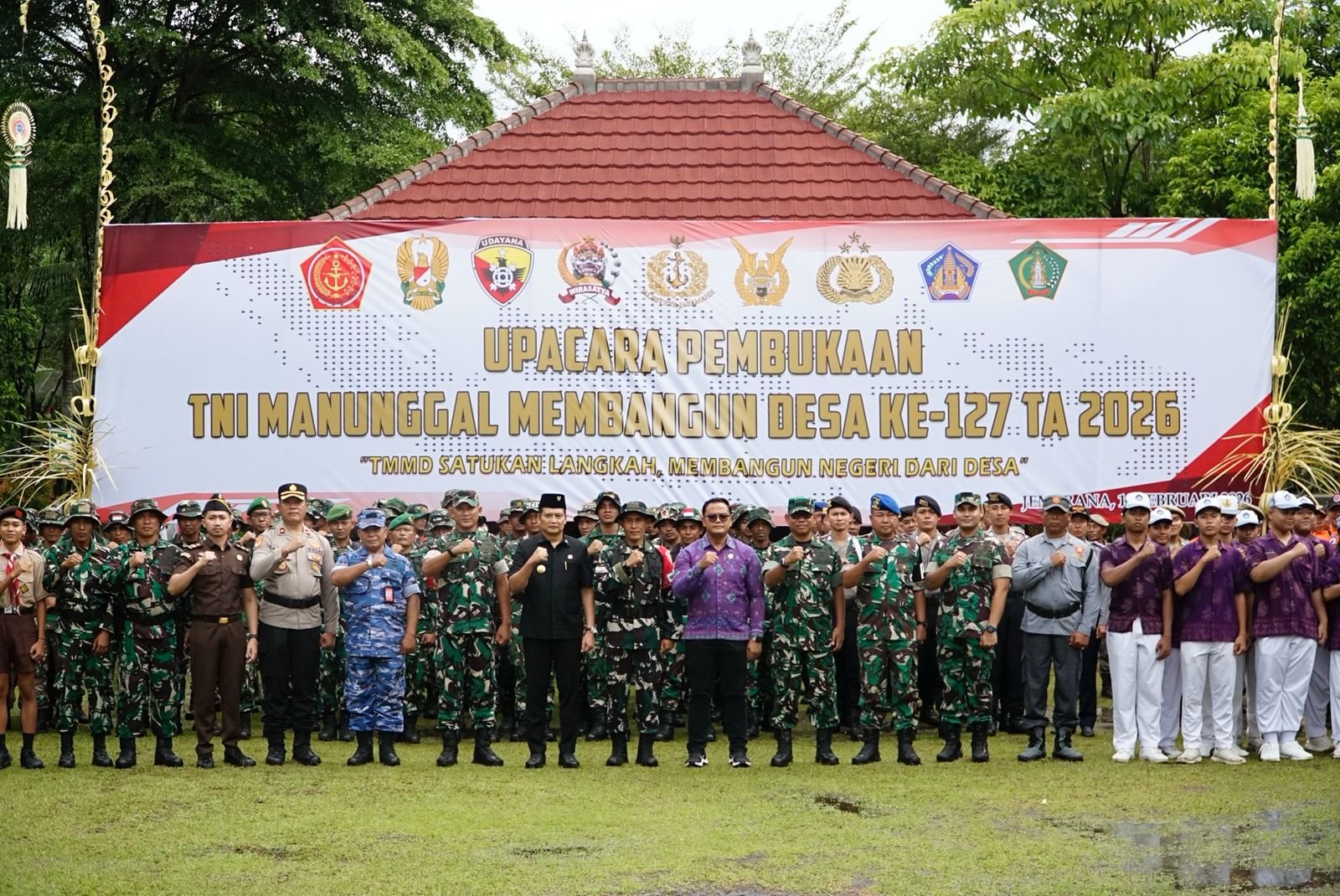 Jembrana – Semangat kebersamaan kembali diperkuat di wilayah Bumi Makepung. Kodim 1617/Jembrana resmi meluncurkan program TNI Manunggal Membangun Desa (TMMD) ke-127 untuk tahun anggaran 2026. Upacara pembukaan yang berlangsung secara khidmat di Lapangan SMAN 2 Mendoyo, Desa Penyaringan, dipimpin oleh Bupati Jembrana, I Made Kembang Hartawan, S.E., M.M.