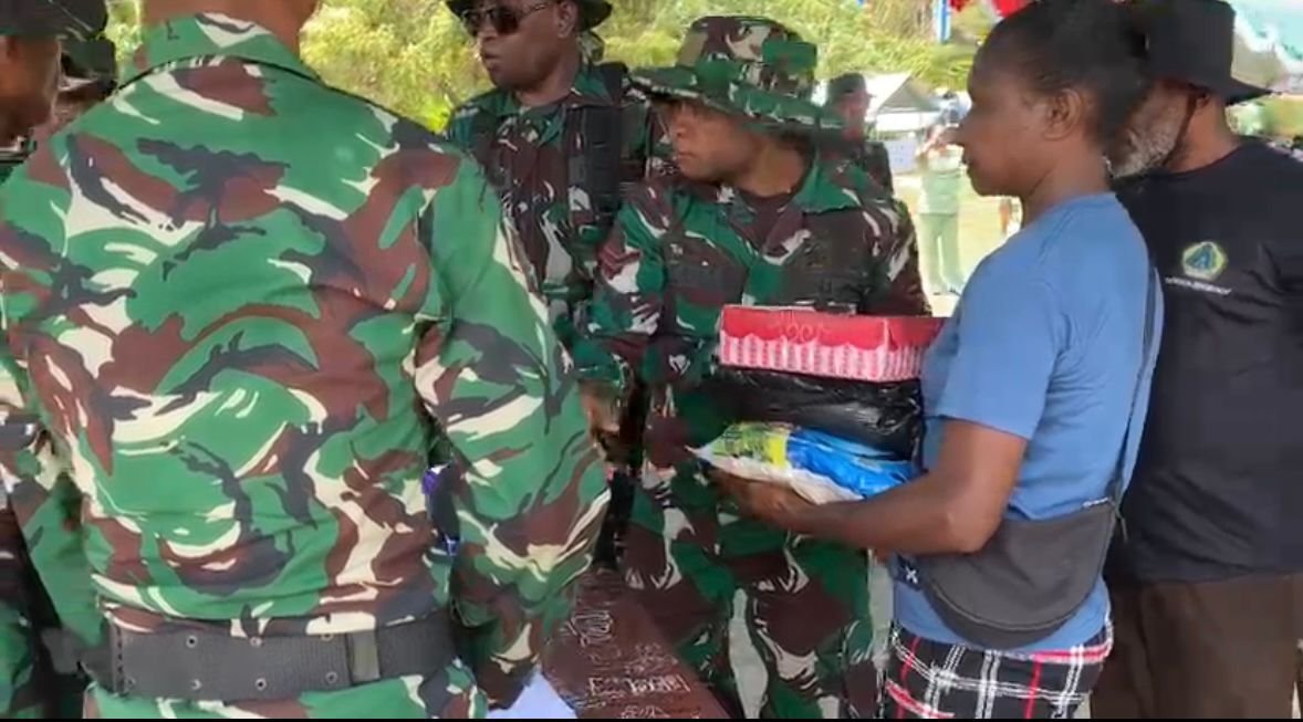 Kaimana – Program TNI Manunggal Membangun Desa (TMMD) ke-127 tidak hanya fokus pada pembangunan infrastruktur, tetapi juga melaksanakan berbagai kegiatan nonfisik yang bermanfaat bagi masyarakat. Salah satunya adalah pembagian sembako yang dilaksanakan di Kampung Marsi, Distrik Kaimana, Kabupaten Kaimana.