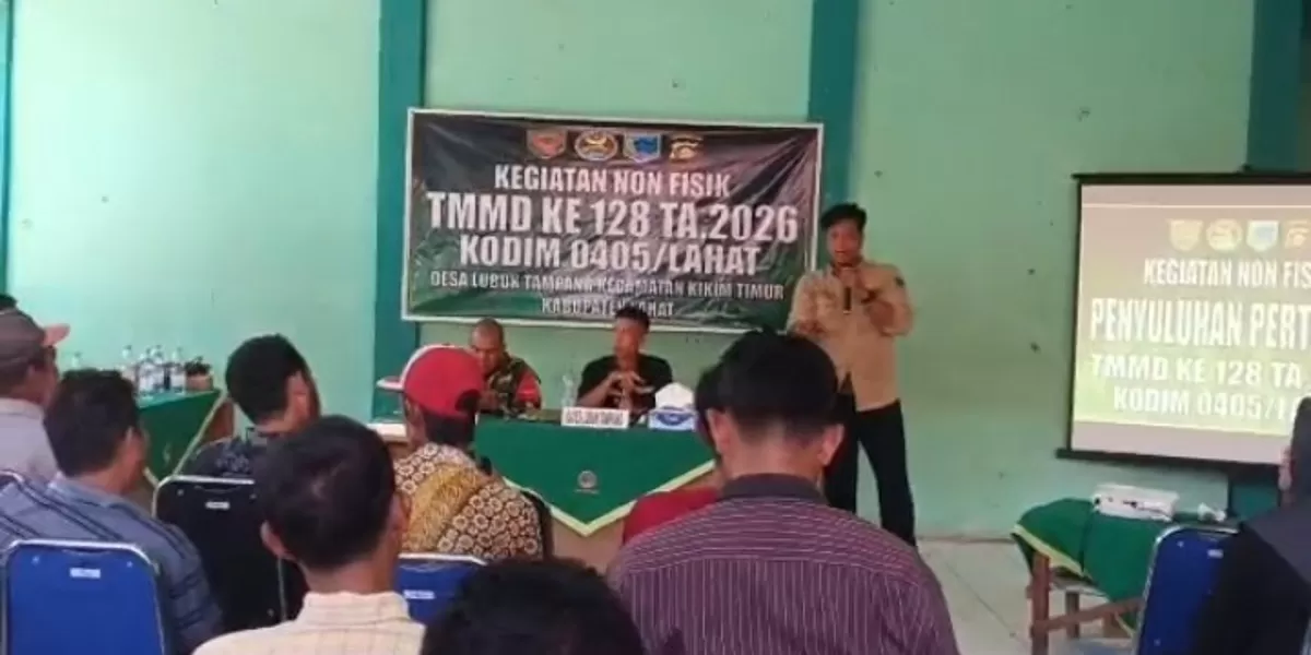 Lahat — Program TNI Manunggal Membangun Desa (TMMD) ke-128 yang dilaksanakan oleh Kodim 0405/Lahat memiliki tujuan yang lebih luas daripada sekadar pembangunan fisik. Dalam kolaborasinya dengan Pemerintah Kabupaten Lahat, kegiatan ini juga berfokus pada pengembangan sektor ekonomi masyarakat melalui penyuluhan yang dilakukan oleh Dinas Perkebunan di Desa Lubuk Tampang, Kecamatan Kikim Timur.