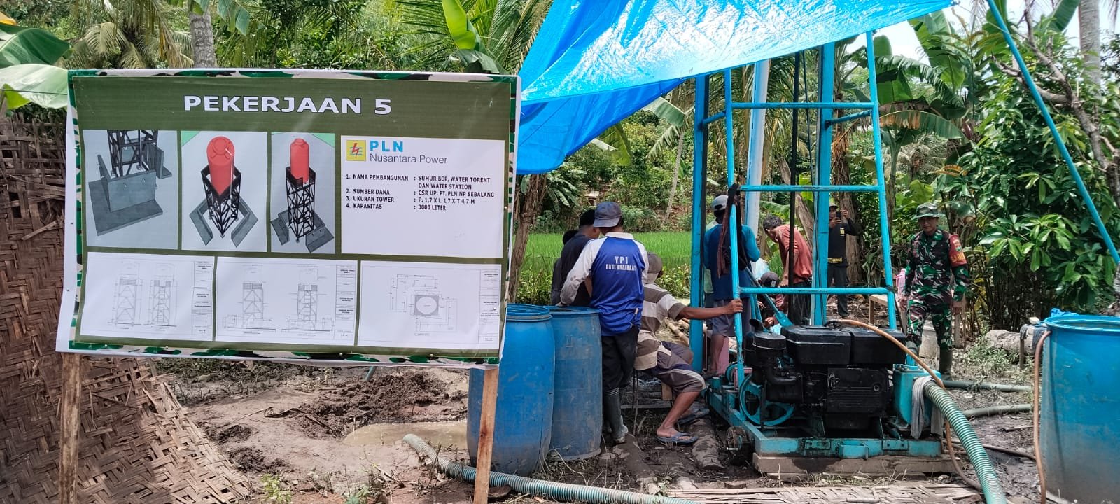 Proyek sumur bor ini merupakan bagian dari sasaran tambahan dalam program TMMD yang dirancang untuk memenuhi kebutuhan air bersih masyarakat. Proses pengeboran mengalami kemajuan yang signifikan, ditandai oleh selesainya pemasangan casing yang merupakan langkah krusial untuk menjaga kualitas serta kestabilan dalam sumur.