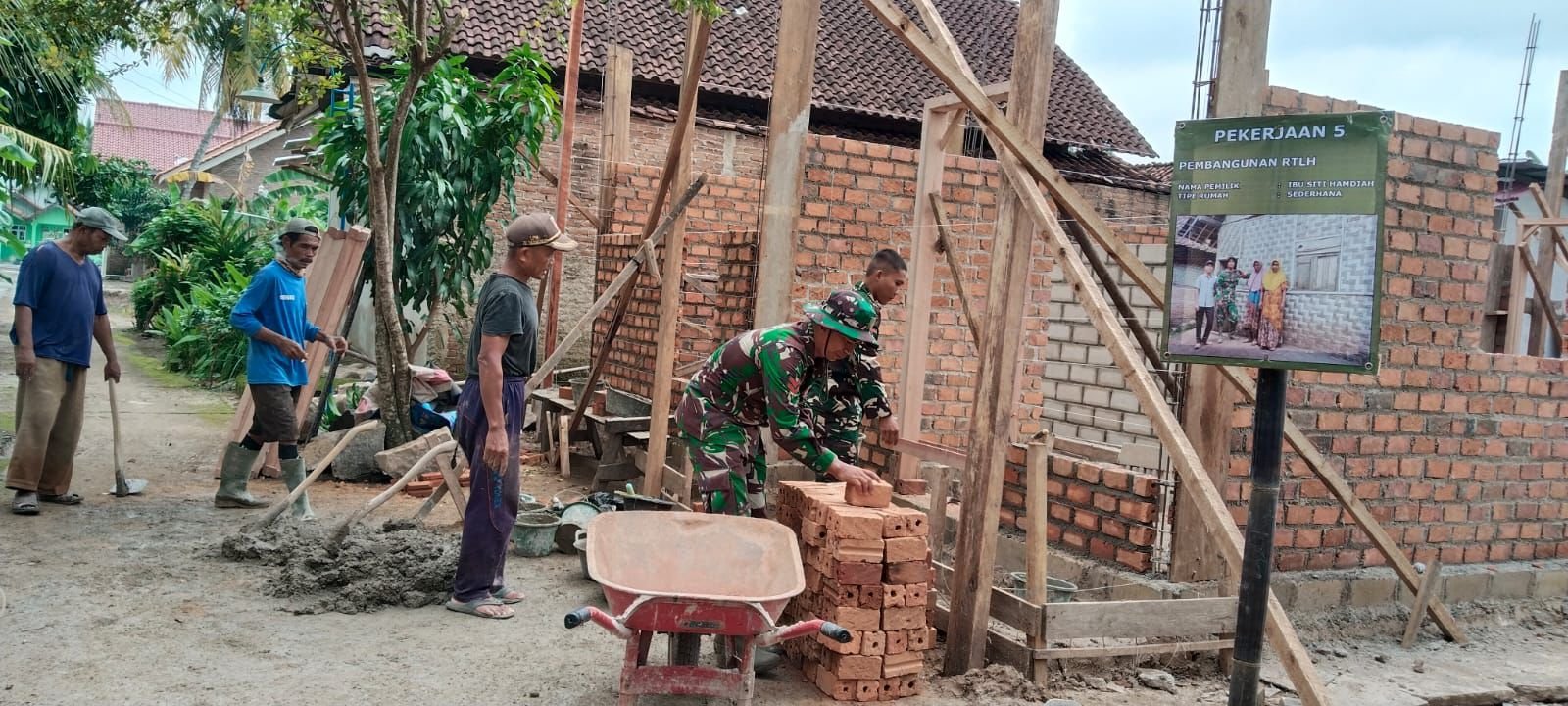 Pesawaran – Program Tentara Manunggal Membangun Desa (TMMD) terus berlanjut dengan fokus utama pada pembangunan Rumah Tidak Layak Huni (RTLH) yang bertujuan untuk meningkatkan kesejahteraan warga. Kegiatan terkini diselenggarakan di Desa Tanjung Rejo, dimana penerima manfaat adalah Ibu Siti Hamdiyah.