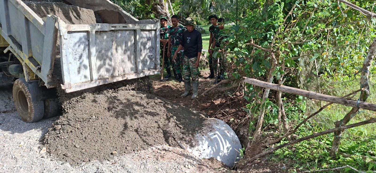 Aceh Barat – Pembangunan jalan di Desa Pasi Aceh terus bergerak maju. Satgas TMMD Reguler ke-127 Kodim 0105/Abar bersama masyarakat kompak menimbun dan memadatkan material guna menciptakan badan jalan yang kokoh.