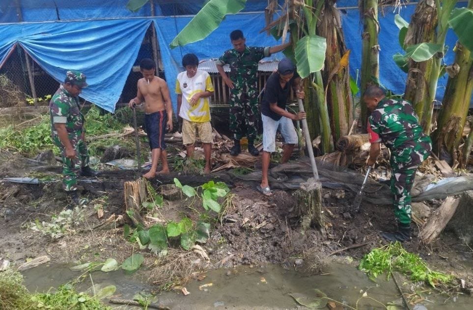 TNI AD Peduli Lingkungan: Koramil 07 Baranti Gelar Karya Bakti Bersihkan Selokan dan Sampah di Desa Sipudeceng