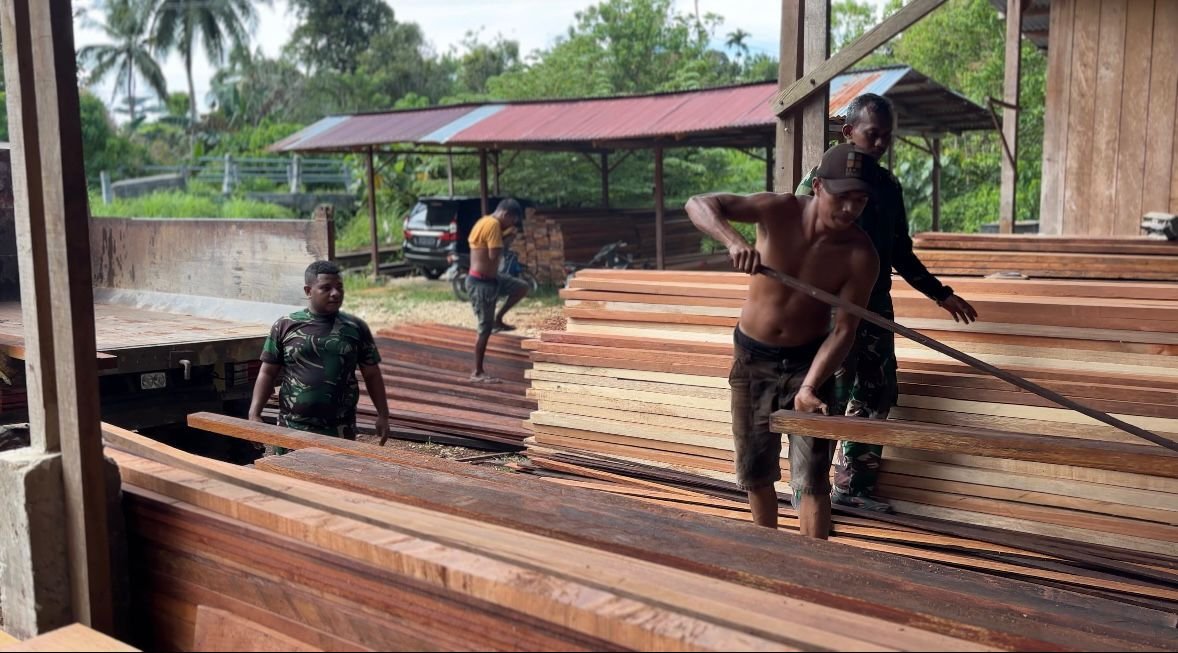TNI dan Masyarakat Bersinergi dalam Pergeseran Kayu ke Kampung Sisir 1