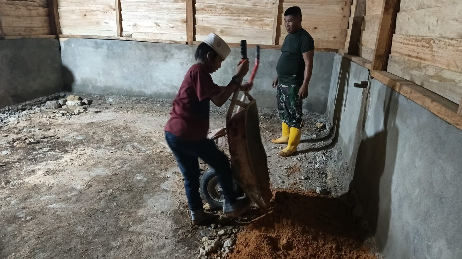 KENDARI – Suasana di Kelurahan Petoaha, Kota Kendari tampak unik saat anggota Satgas TMMD ke-127 dari Kodim 1417/Kendari bersama masyarakat setempat melanjutkan pembangunan Rumah Tidak Layak Huni (RTLH) hingga larut malam pada Jumat (6/3). Meskipun diliputi kegelapan, semangat para prajurit dan warga tidak pudar dalam menyelesaikan berbagai tahapan pembangunan rumah untuk masyarakat.