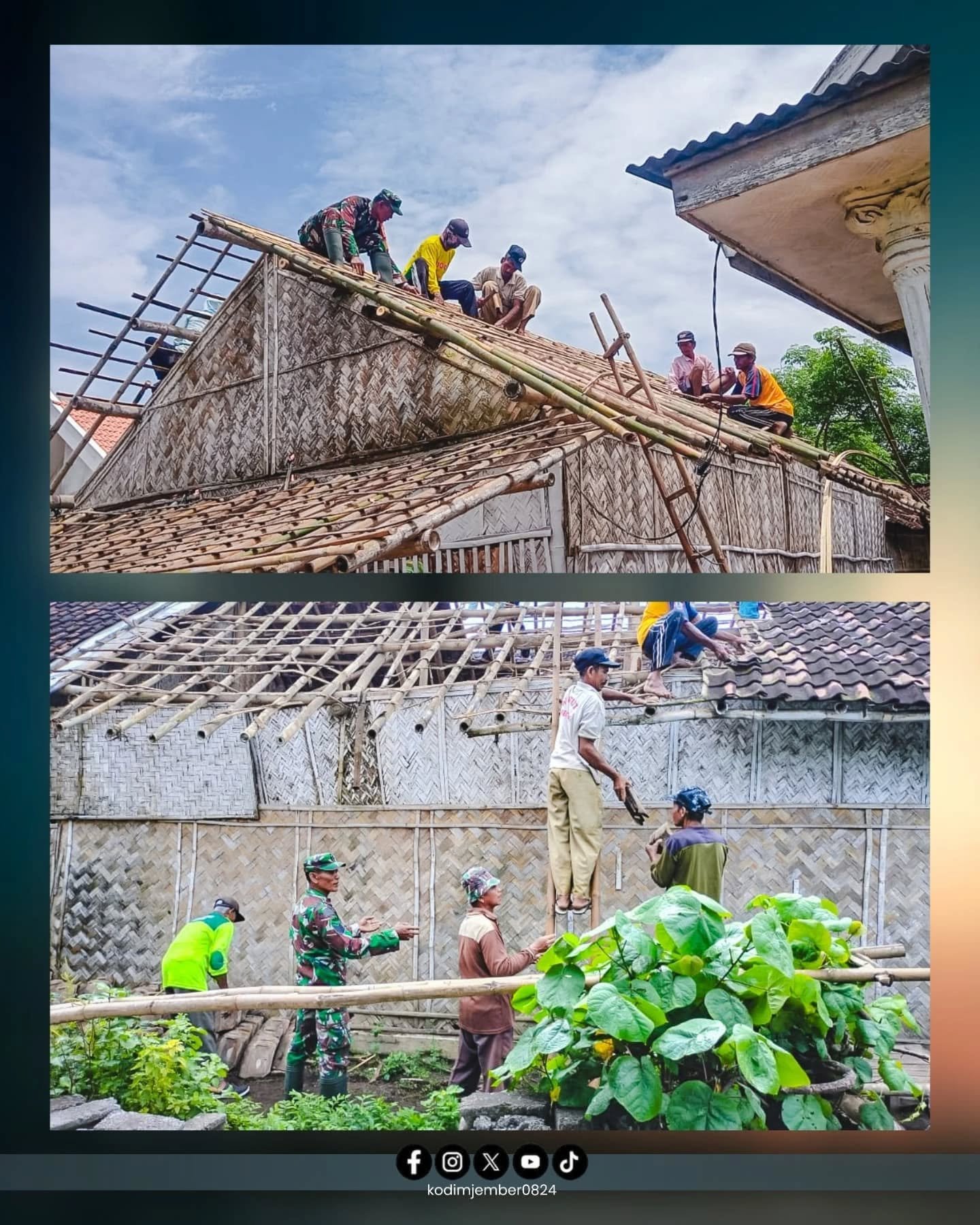 TNI Hadir untuk Rakyat, Koramil 0824/20 Gumukmas dan Warga Bedah Rumah Mbok Sutinah Janda Tua 72 Tahun