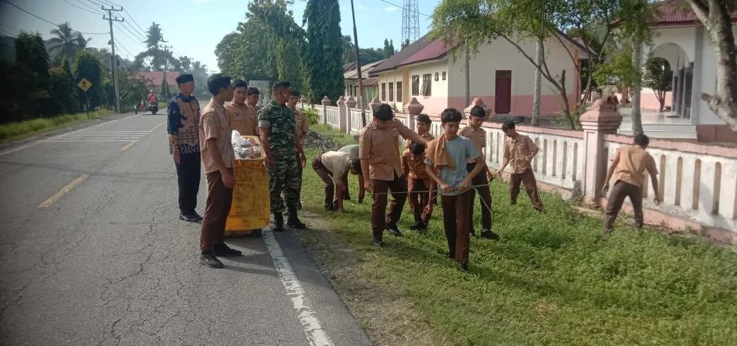 TNI Jajaran Korem 012/TU Bersama Pelajar Meukek Wujudkan Sekolah Bersih dan Nyaman untuk Belajar