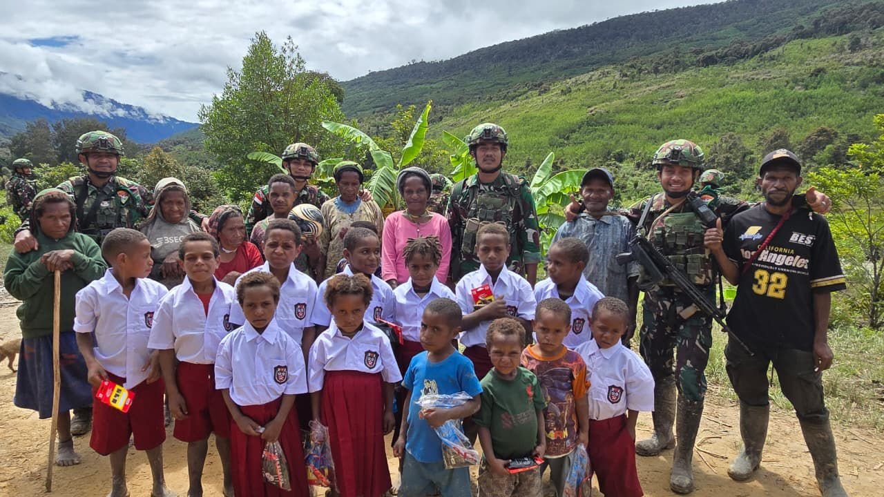 Alutbakon, Pegunungan Bintang — Dalam rangka memperkuat pembinaan teritorial yang humanis, Pos Oksop Satgas Swasembada Yonif 751/Vira Jaya Sakti (VJS) melaksanakan kegiatan anjangsana ke Kampung Alutbakon pada Selasa, 17 Maret 2026. Kegiatan ini bertujuan untuk mendekatkan pelayanan dasar kepada masyarakat di daerah perbatasan. Dalam kegiatan tersebut, bantuan yang diberikan meliputi bola untuk anak-anak, perlengkapan sekolah, dan seragam baru serta pelayanan kesehatan untuk warga yang mengalami keluhan kesehatan.