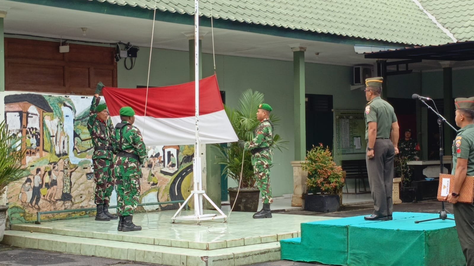 Upacara diawali dengan persiapan pasukan dan penghormatan kepada Inspektur Upacara. Selanjutnya, bendera Merah Putih dikibarkan dengan diiringi lagu Indonesia Raya, disusul dengan mengheningkan cipta, pembacaan Sapta Marga, serta Sumpah Prajurit. Acara diakhiri dengan doa dan penghormatan oleh seluruh pasukan.