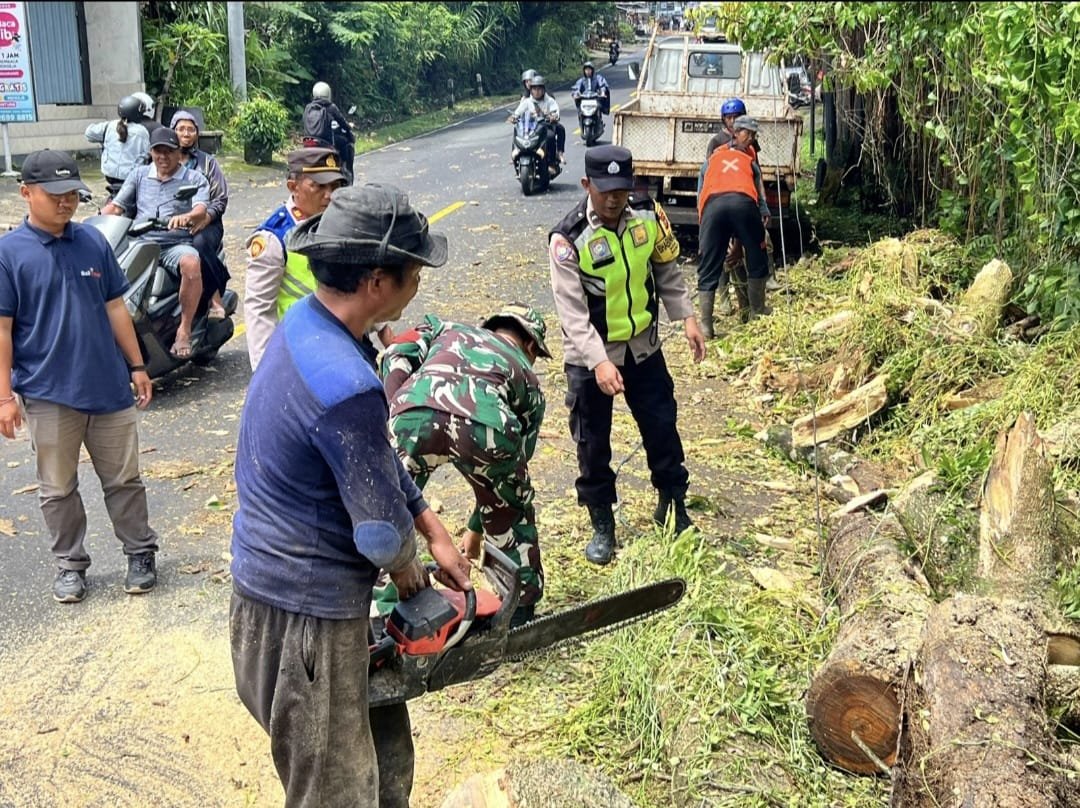 Tabanan — Dalam upaya mengurangi risiko bencana, aparat kewilayahan bersama masyarakat aktif melakukan pencegahan. Kopda I Putu Ade Wiradarma, Babinsa Desa Luwus dari Koramil 1619-07/Baturiti, turut berpartisipasi dalam penebangan pohon berisiko roboh di Desa Luwus, Kecamatan Baturiti, pada hari Kamis (4/2/2026).