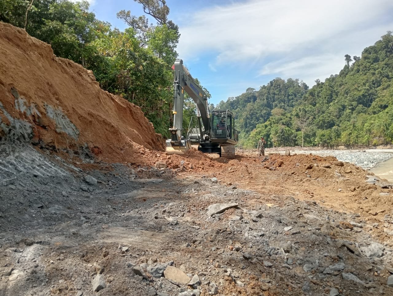Pengerjaan jalan yang terdampak banjir tersebut melibatkan alat berat yang bekerja secara maksimal di lapangan. Prajurit Korem 012/TU bersama unsur terkait bahu-membahu melakukan penimbunan, perataan badan jalan, serta penguatan struktur agar akses jalan dapat segera dilalui dengan aman.