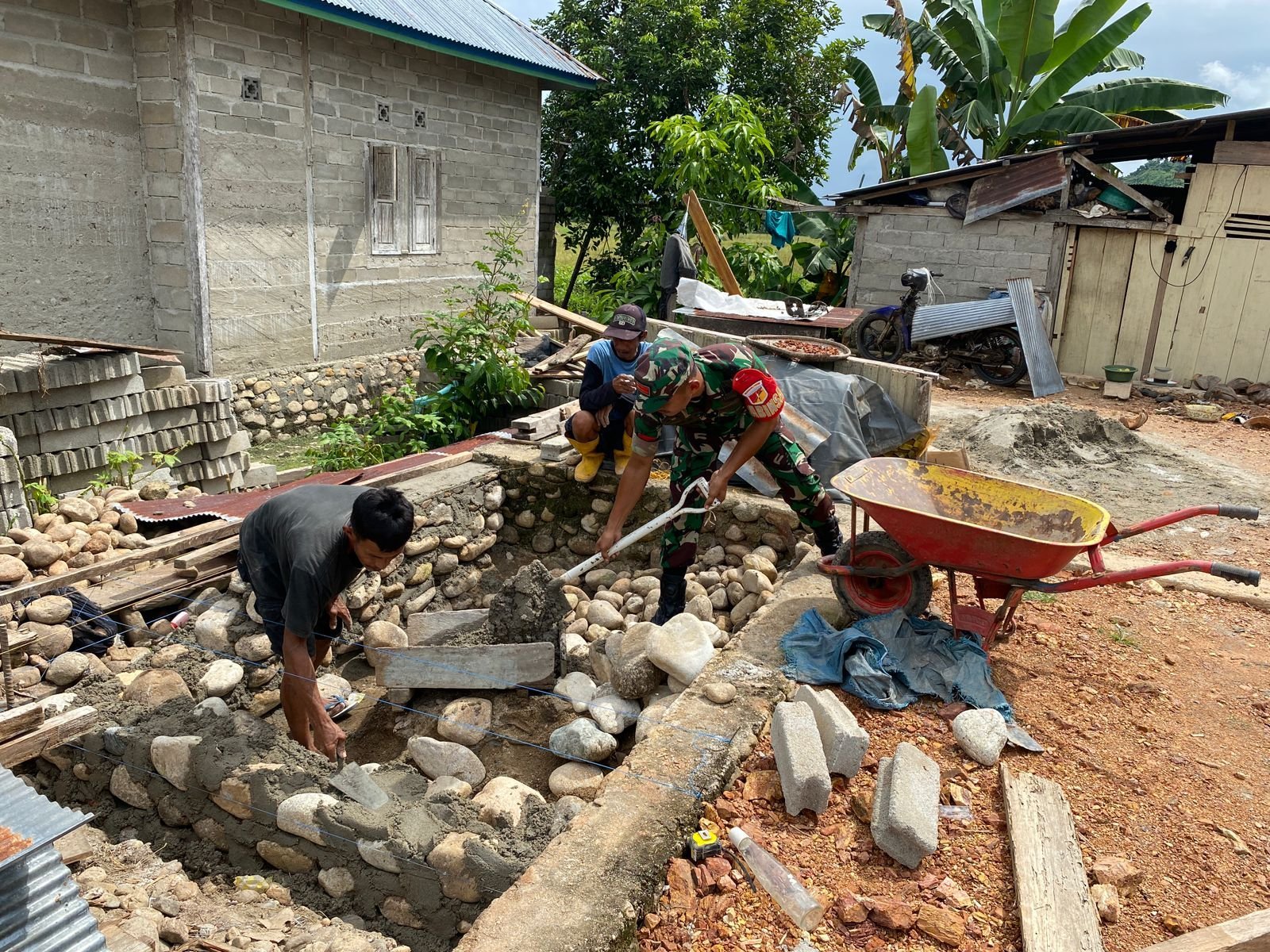 Wujud Kebersama, Babinsa Koramil 04 Dondo Bantu Bangun Pondasi Rumah Warga