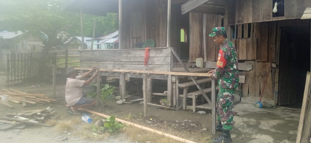 Wujud Kebersamaan dan Kepedulian, Babinsa Koramil 02 Tolut Bantu Buat Pagar Rumah Warga
