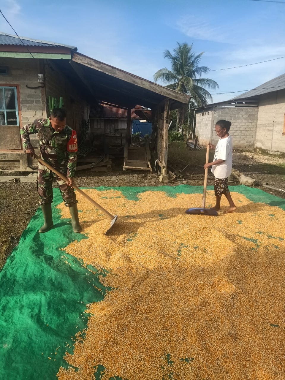 Wujud Pendampingan Ke Petani Babinsa Koramil 09 Bokat Bantu Warga Jemur Jagung